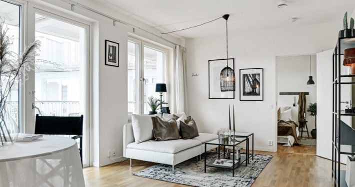 En modern lägenhet med extra stor balkong stylades upp i förra…
